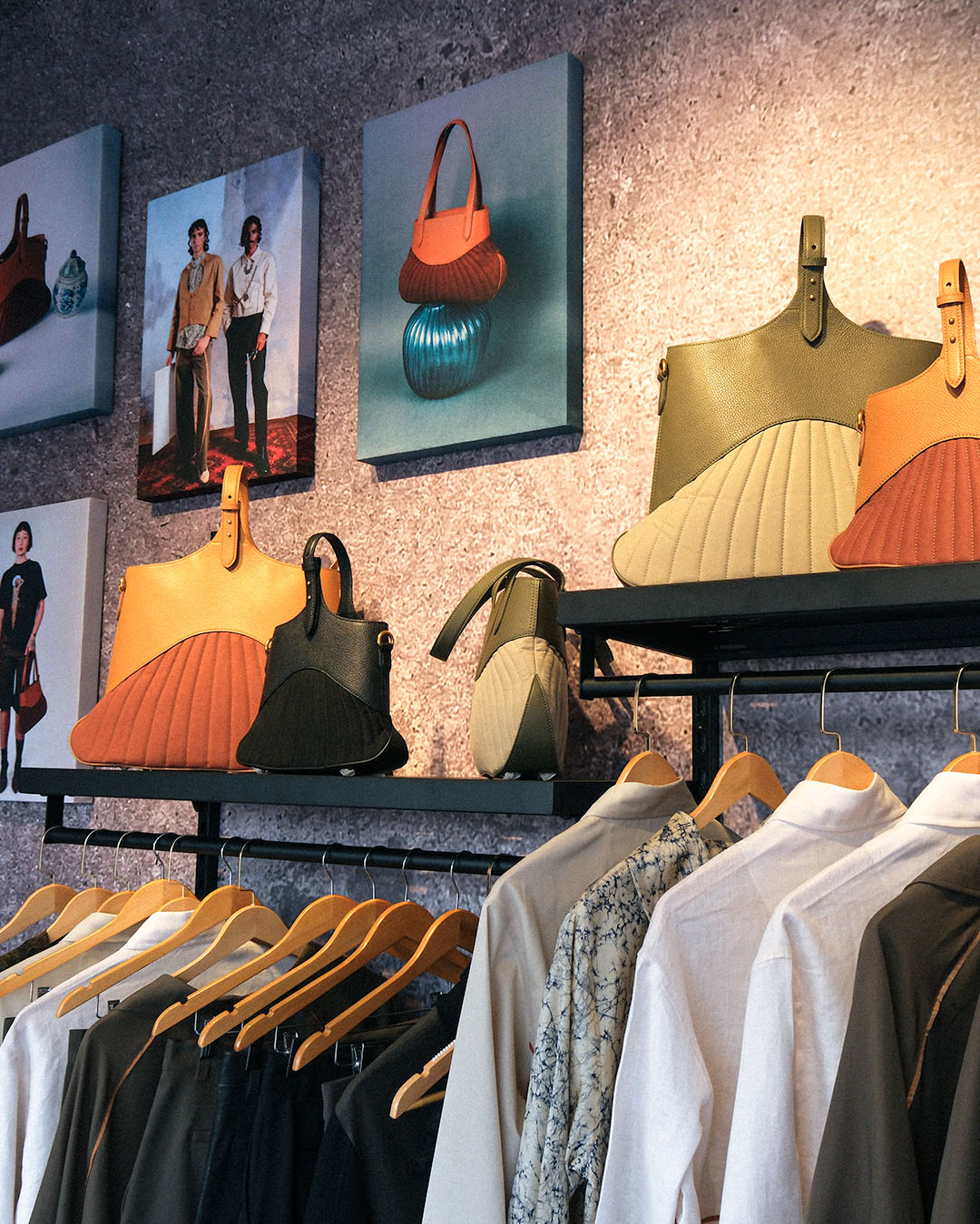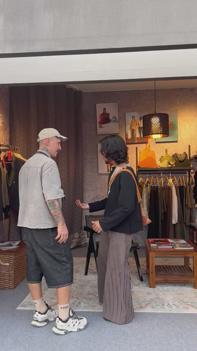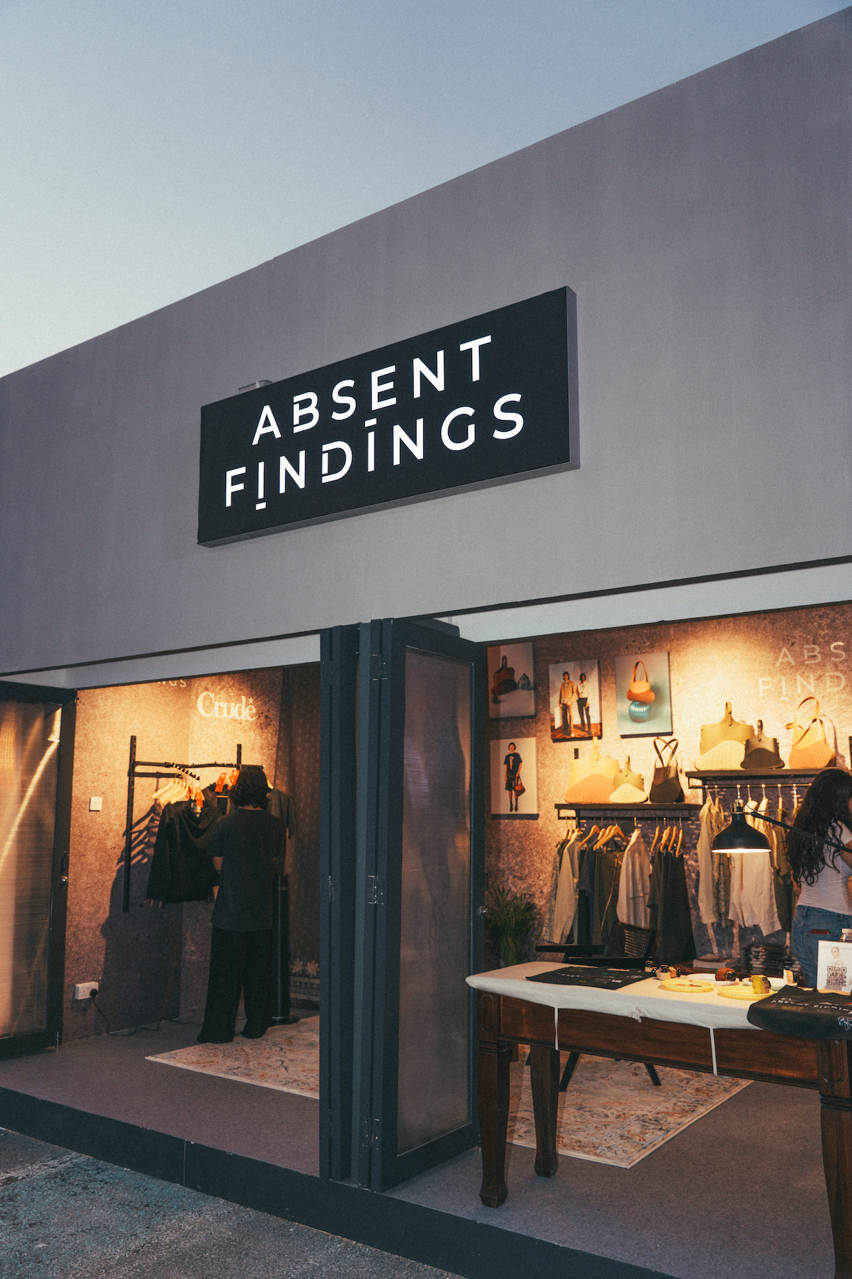 Amid the festival’s energetic landscape, we introduced a distinct high-fashion edge, crafting a space that invited visitors to step into our world. Every element of the Absent Findings retail unit was carefully considered: hand-painted walls, Pierre Jeanneret Chandigarh chairs, block printing activations, and limited-edition pieces created exclusively for the festival. It was a space built not just to display garments, but to immerse visitors in the philosophy that guides our work — one shaped by memory, craftsmanship, and the beauty found in what is often left behind.
