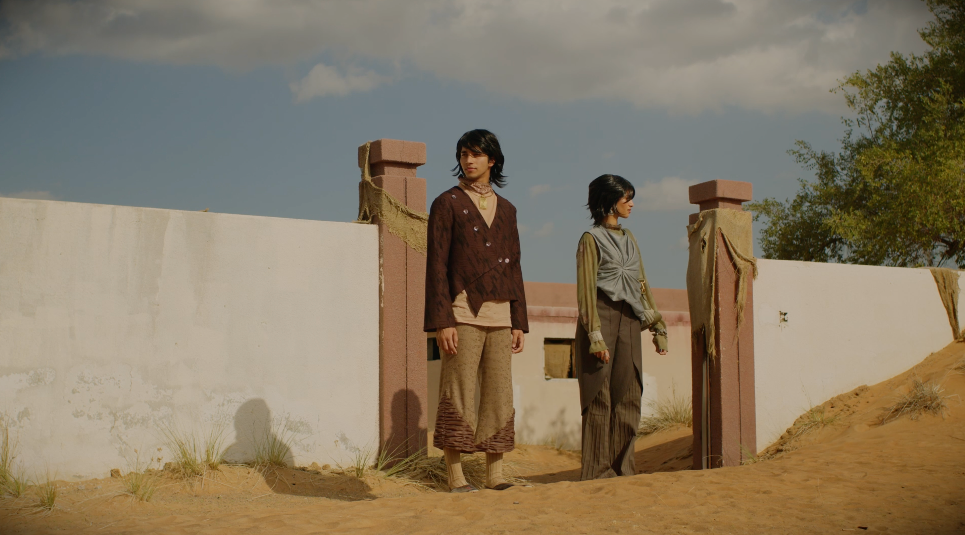 The color palette is drawn from a profoundly personal source, a painting by Francis Bacon, Singh’s favorite artist. Muted, bruised tones coexist with charged, visceral hues, creating a palette that feels psychological rather than decorative. Color is used as an emotional tool, suggesting tension, vulnerability, intimacy, and distortion rather than functioning as a seasonal statement.